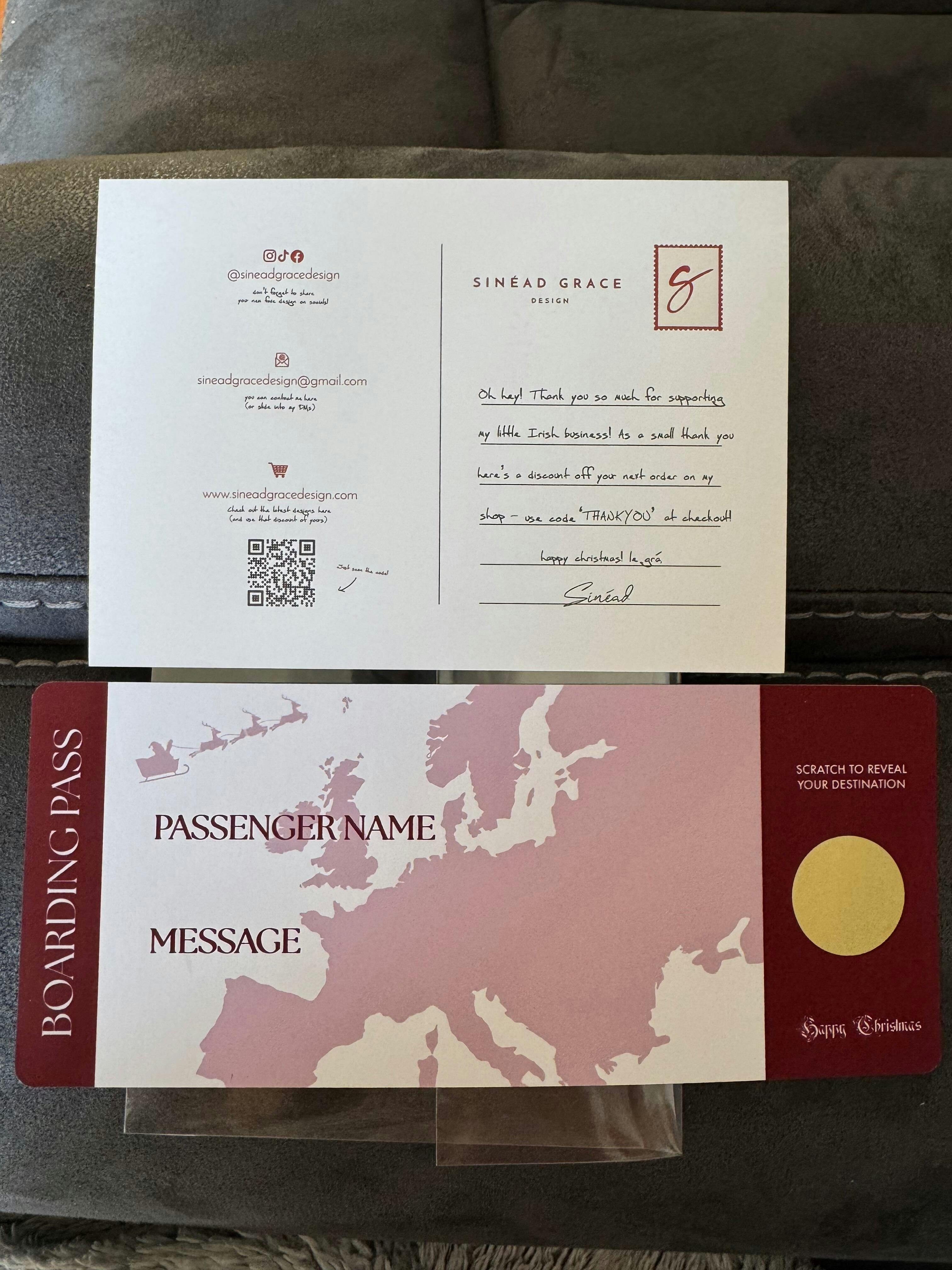 note: Passenger / Message is blank for you to write yourself but don't forget to provide the Destination in the box above so it can be created for you under the scratch sticker!